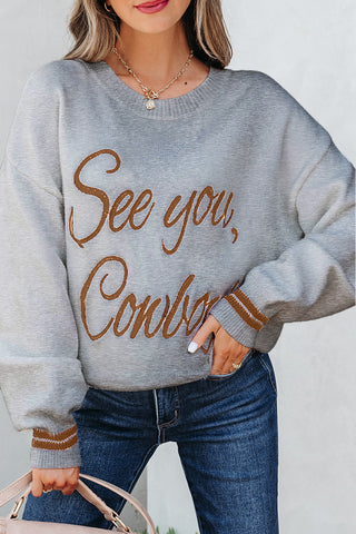 Peach Blossom See You Cowboy Embroidered Western Graphic Sweater